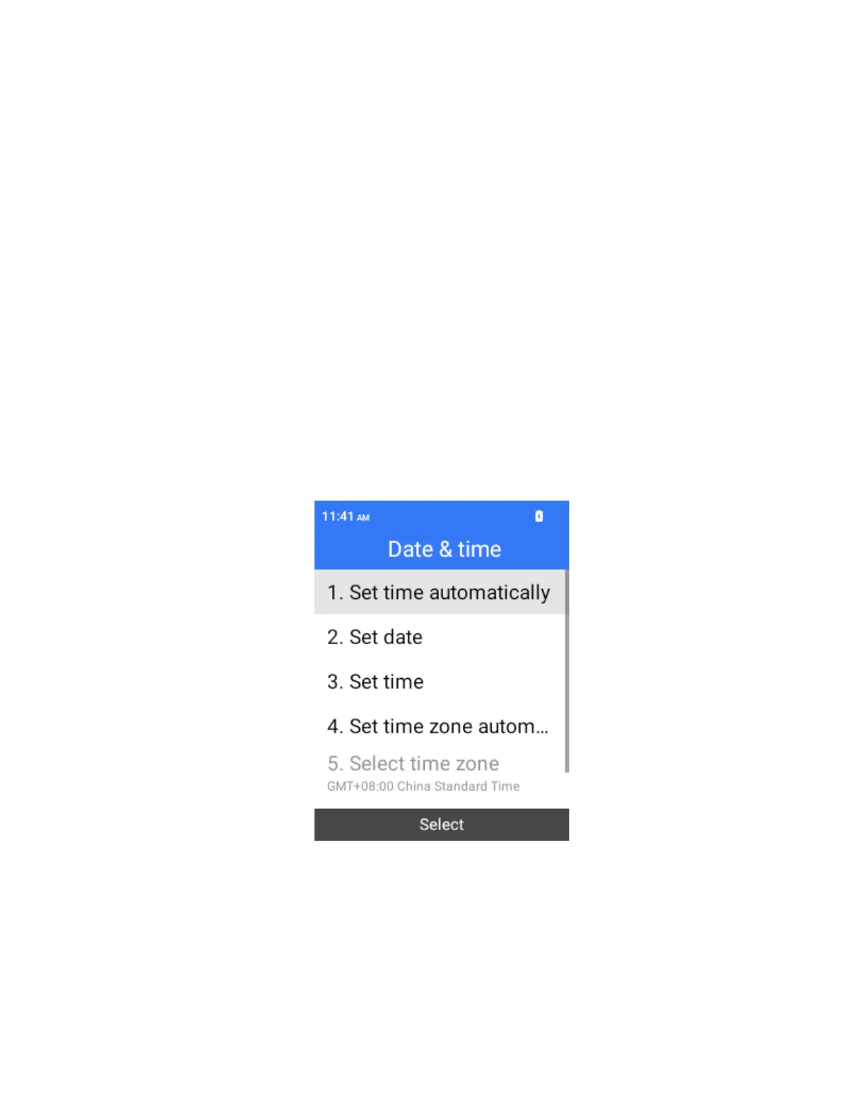 From the home screen, press OK to enter the Apps List, then select Settings > Phone settings > Date