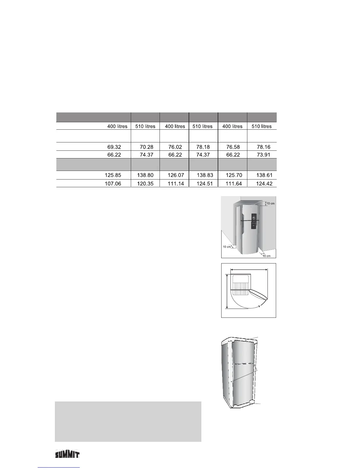 Capacity 400 litres 510 litres 400 litres 510 litres 400 litres 510 litres