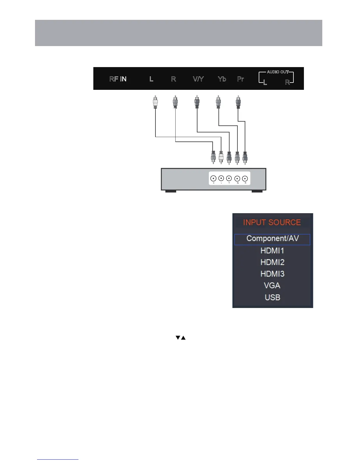 equipment to the Component Y Pb Pr input on the TV’s panel.