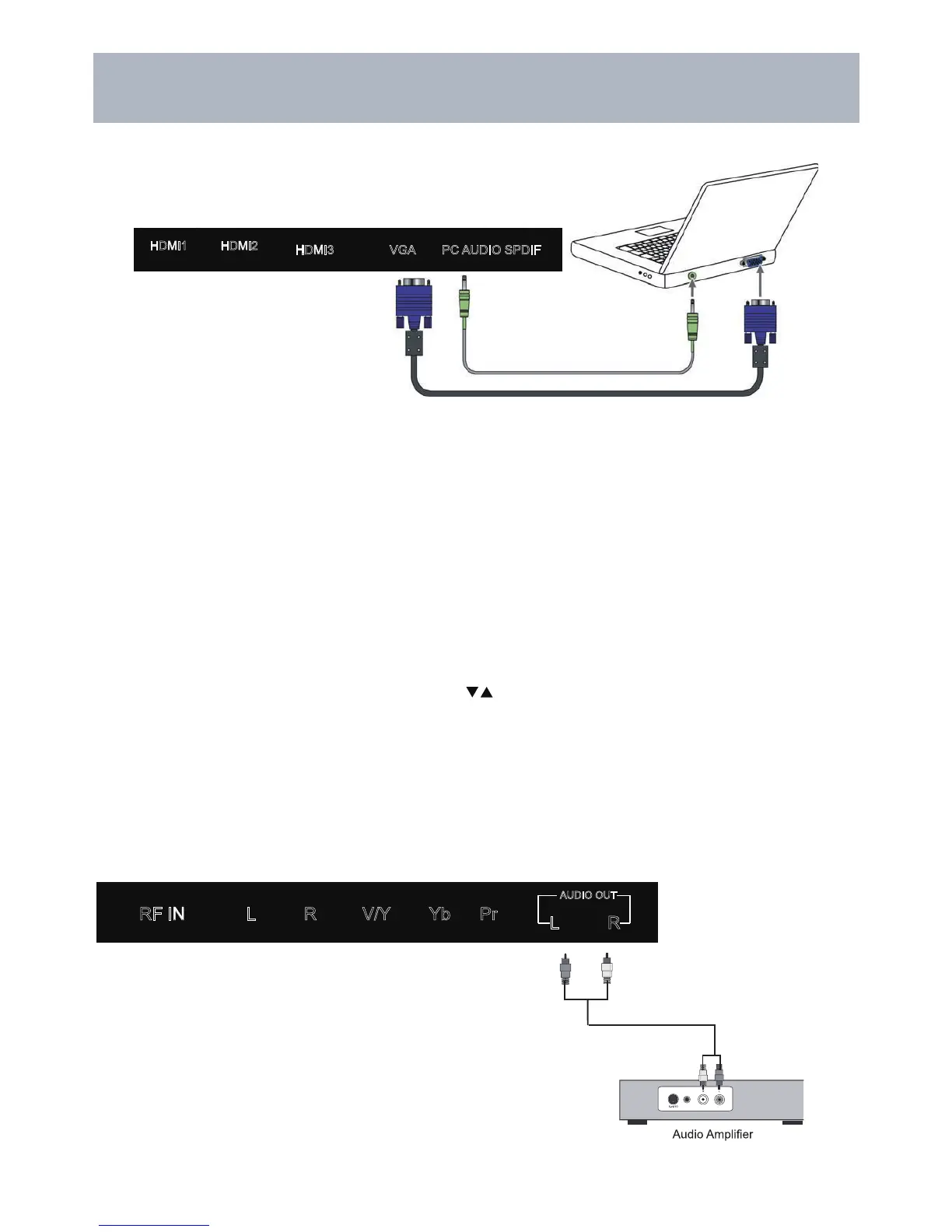 • Connect the TV’S Audio output jacks to an Audio Amplifier
