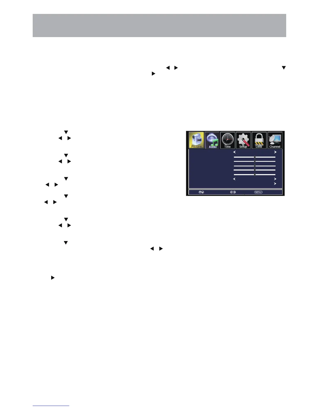 The Picture menu offers options to enhance and refine the picture displayed on your TV based on ambient room light