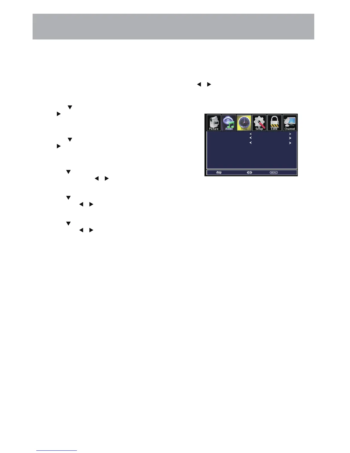 Press the MENU button on the remote control. Navigate using arrow buttons to select Time.