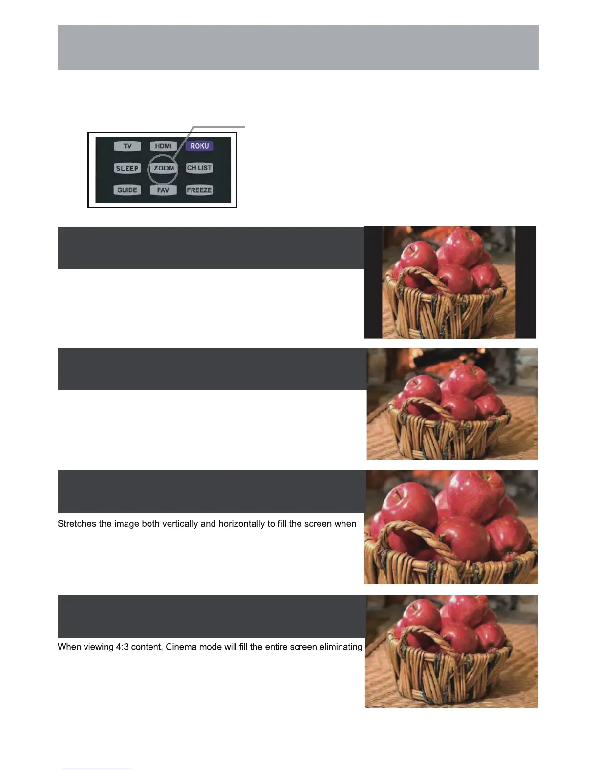 viewing widescreen content. The Zoom effect will crop images somewhat.