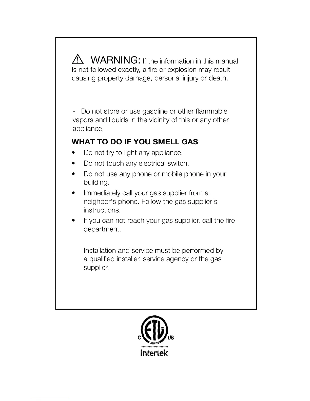 Summit PRO24G - General Safety and Warnings; What to Do If You Smell Gas