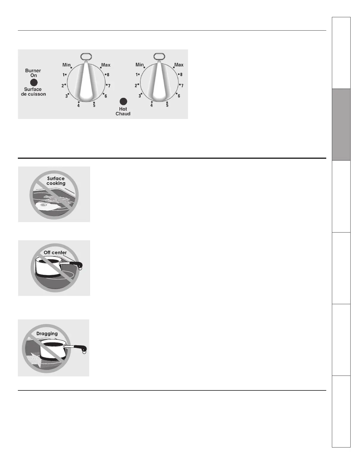 A Burner On indicator light will glow when any sur-