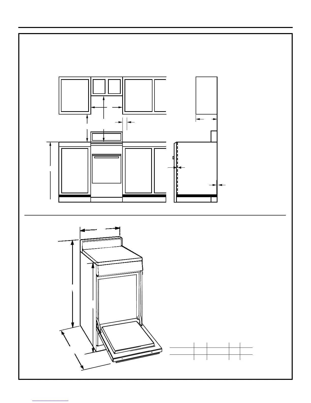 Provide adequate clearances between the range and adjacent combustible surfaces. These dimensions must be met