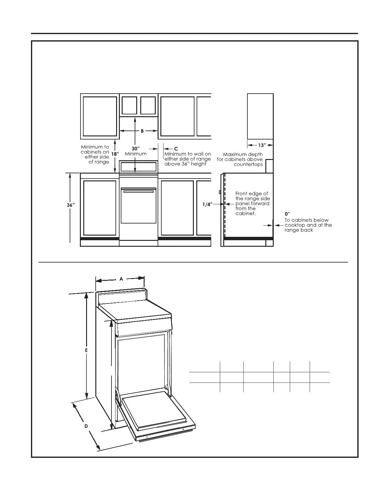 Provide adequate clearances between the range and adjacent combustible surfaces. These dimensions must be met