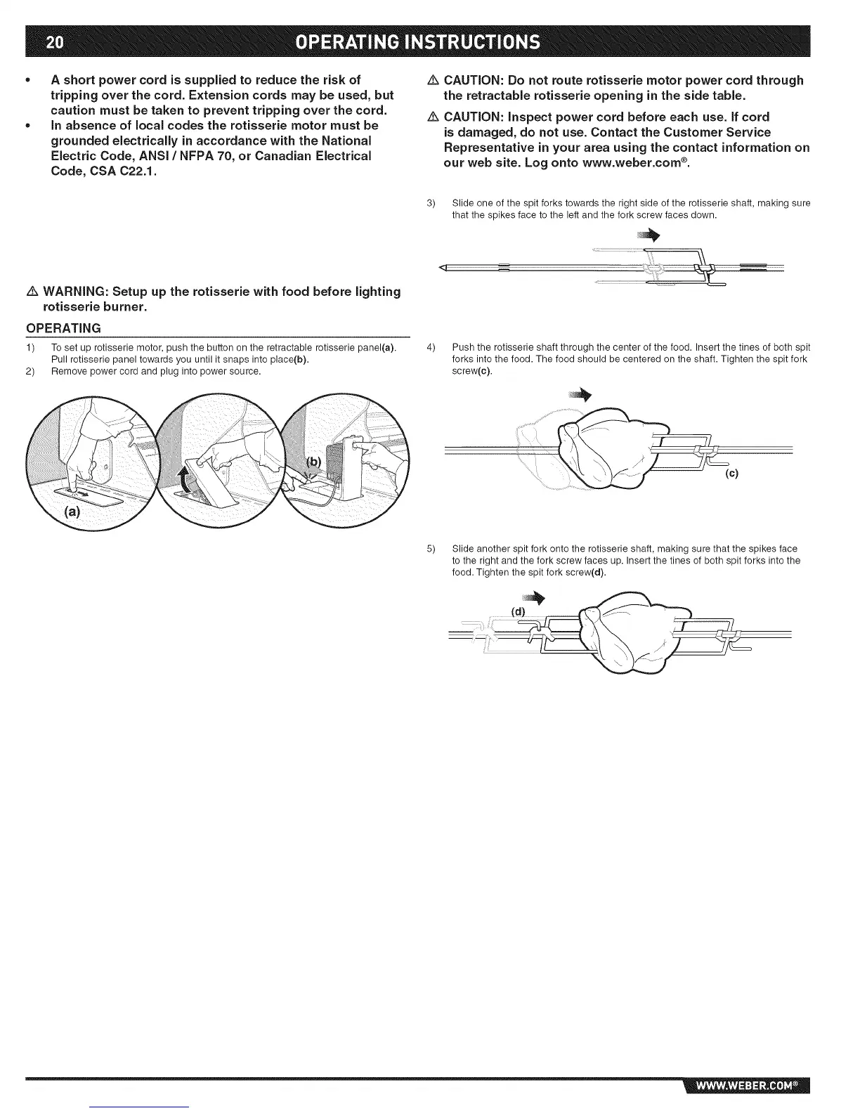 forks into the food. The food should be centered on the shaft. Tighten the spit fork