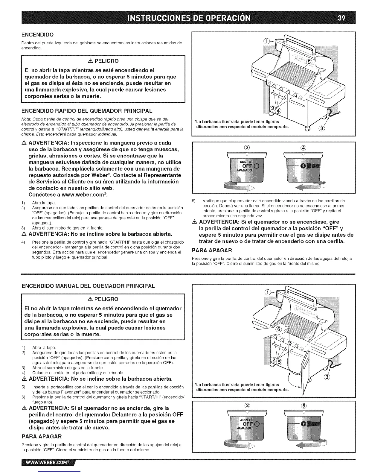 z_ ADVERTENCIA: Si el quemador no se enciende, gire la