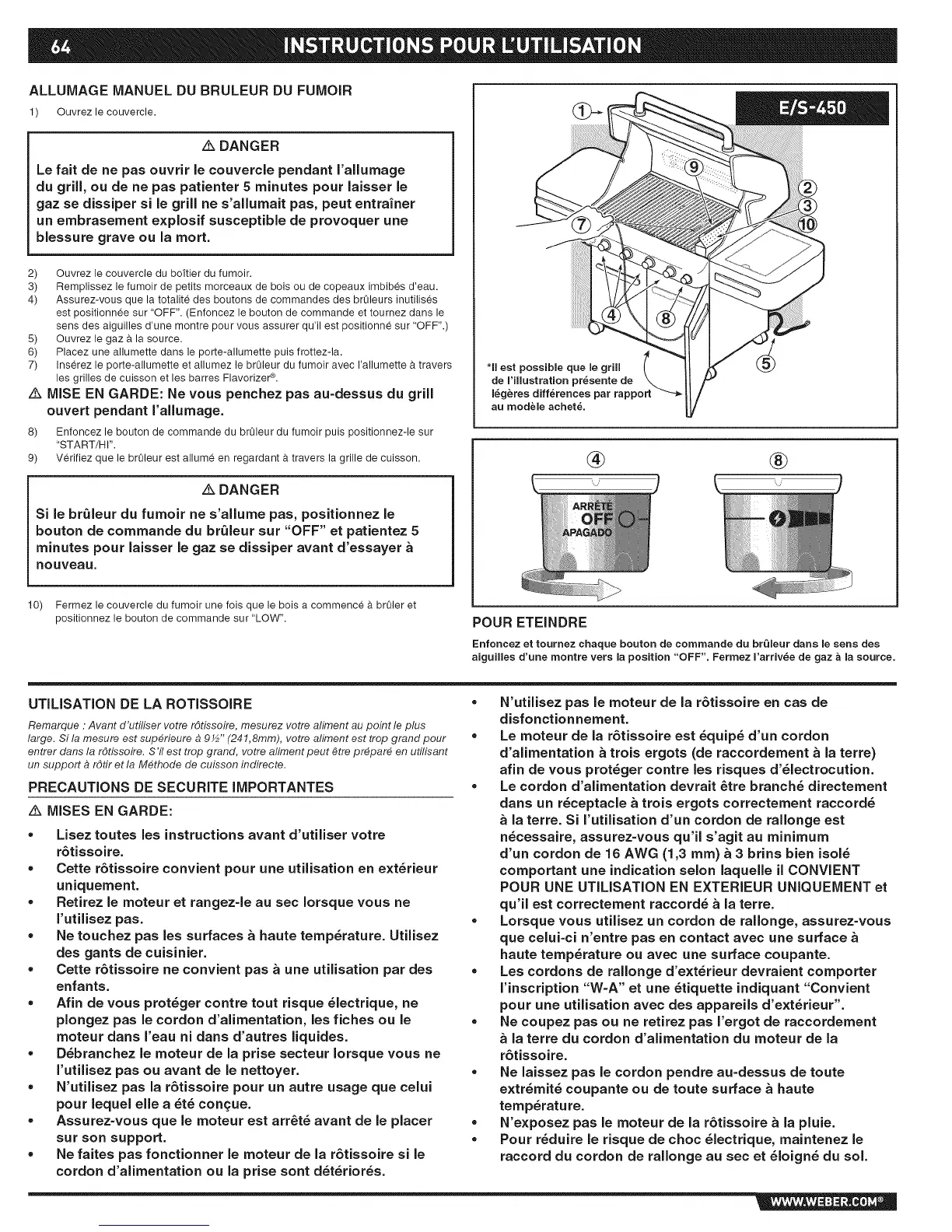 MISE EN GARDE: Ne vous penchez pas au=dessus du grill