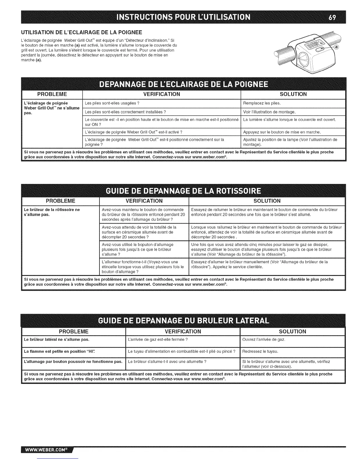 L'eclairage de poignee Weber Grill Out TM est-il positionne correctement sur la Ajustez la position de la lamp® (Voir I'uillustration de
