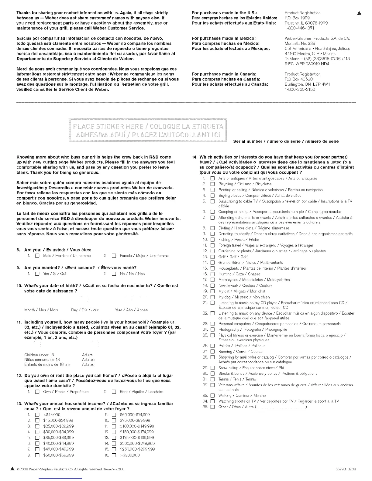 @2008 Weber_Stephen Products Co. A]] rights reserved. Prlntedln USA 55798_0708