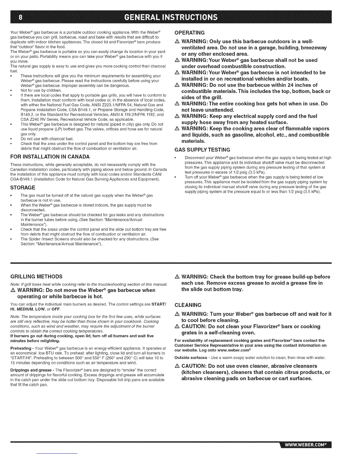 z_ WARNING:Your Weber ®gas barbecue is not intended to be