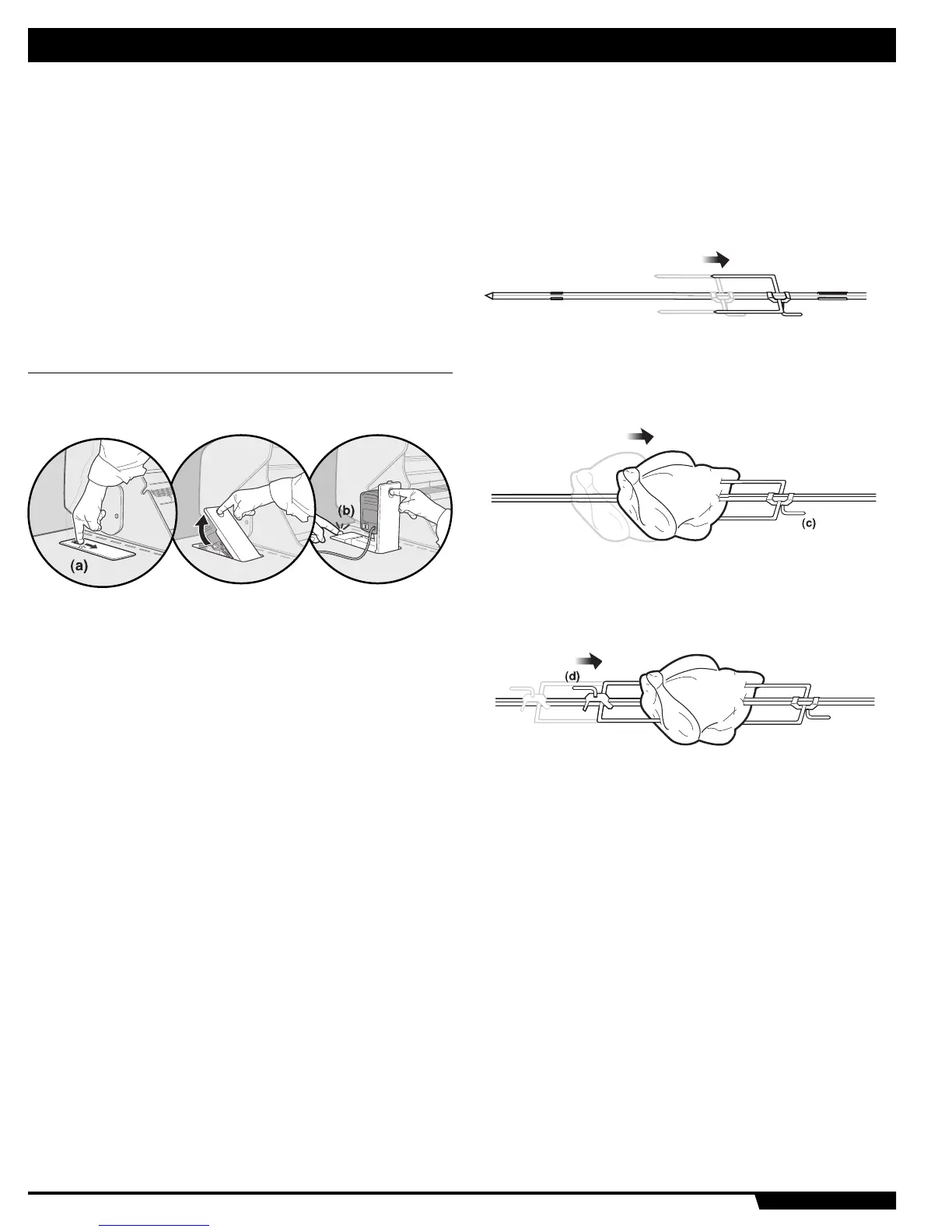 Pull rotisserie panel upwards. Push locking tab (b) until it snaps into place.