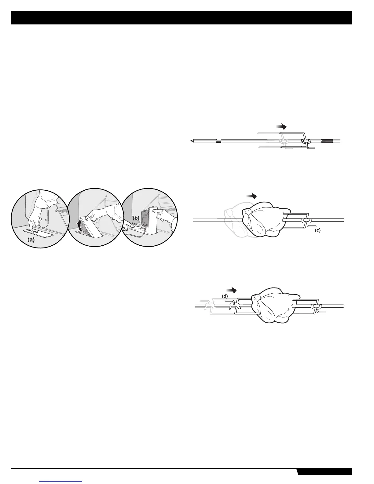 3) Deslice una de las horquillas del asador hacia el lado derecho del eje del asador