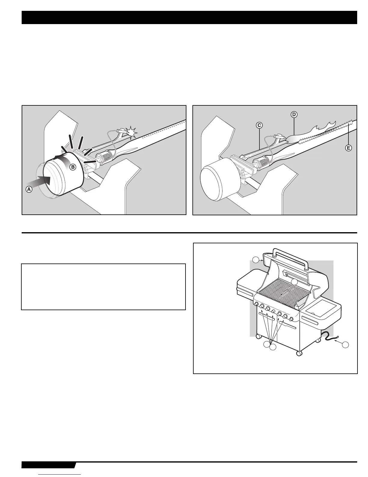 d’allumage du brûleur (C). Vous entendez un déclic en provenance de l’allumeur. Vous
