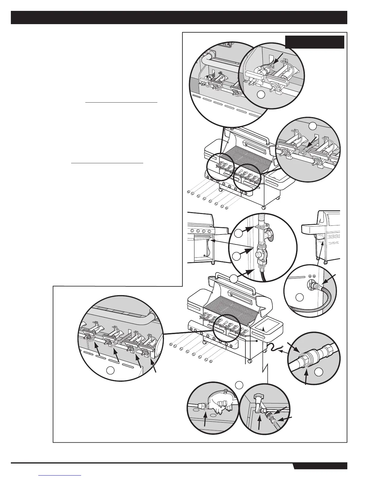 2) La conexión de la línea de gas al quemador del asador giratorio (quemador