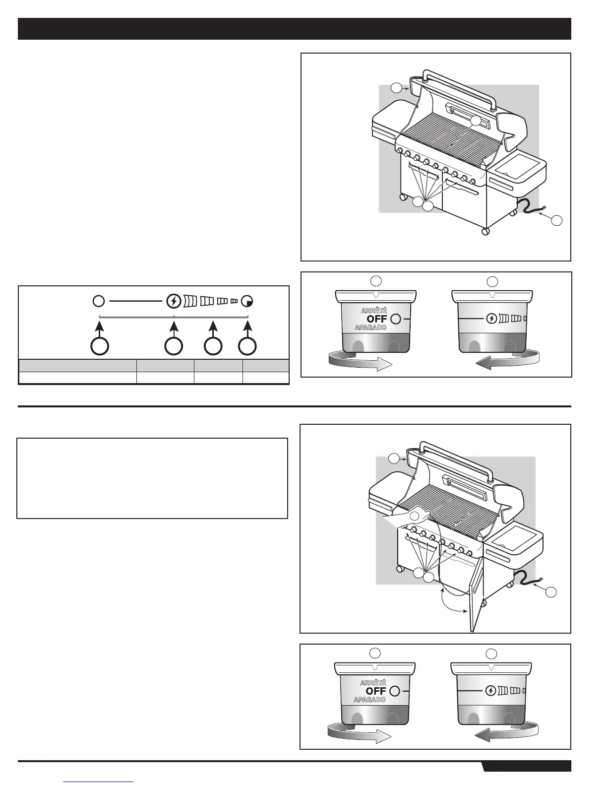 Enfoncez et tournez chaque bouton de commande du brûleur dans le sens des aiguilles