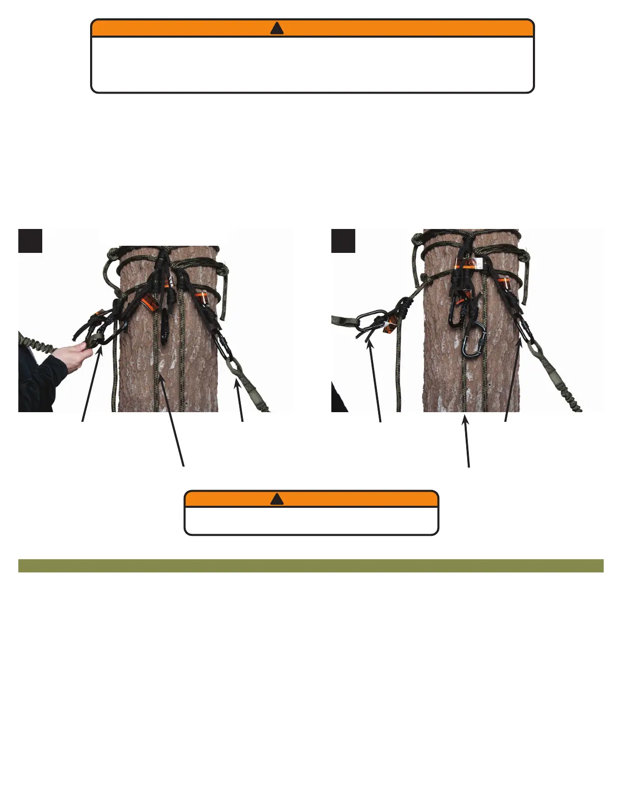 1. Ensure both Prusik Hitches are at the TOP of the 30 FT Safety Line. The First person exiting the treestand: Secure the tether on your Full