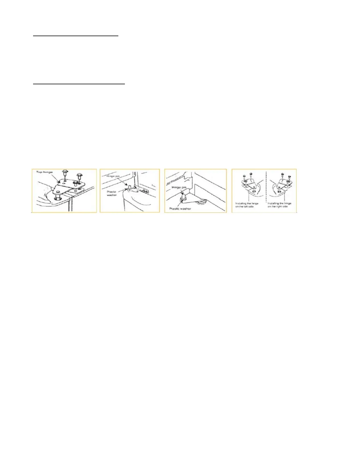 1. Take off the upper hinge cover from the door and remove the screws that hold the top hinge.