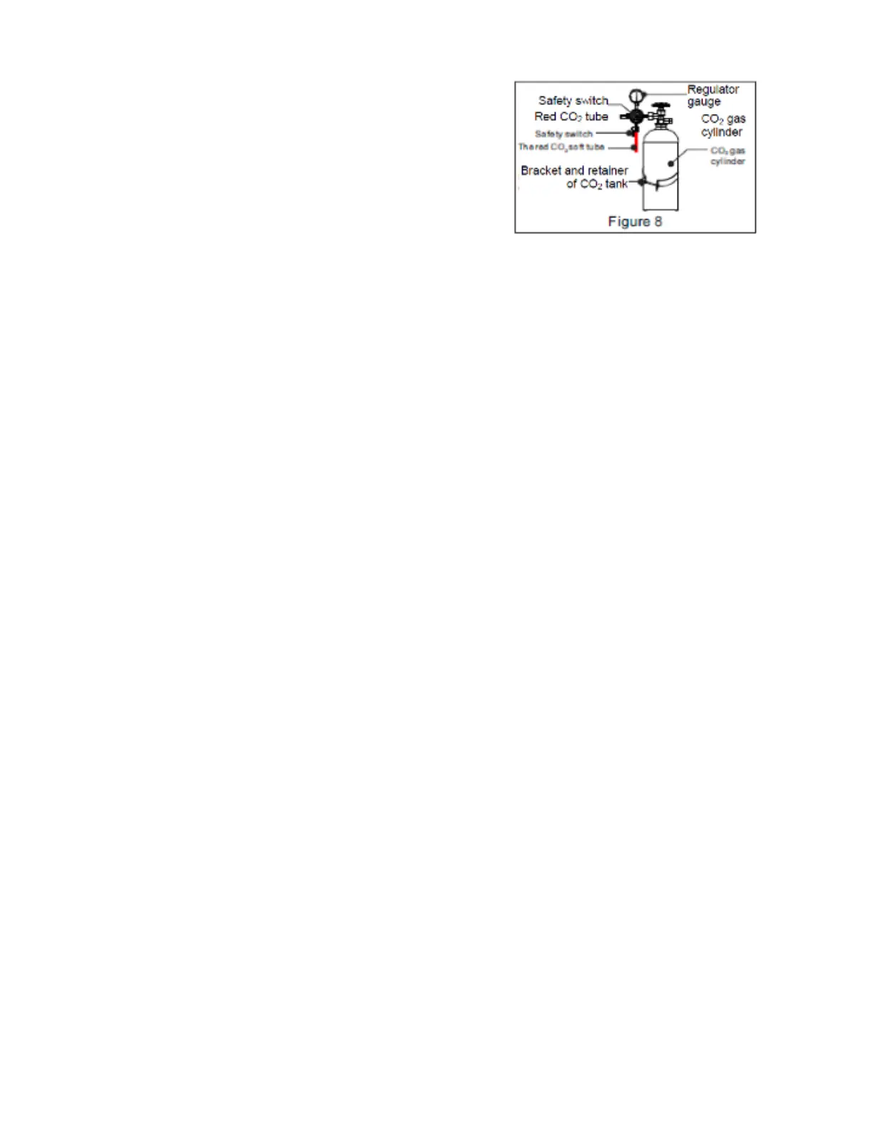 o Keep gas cylinder away from heat sources. Unused cylinders should be placed upright in a