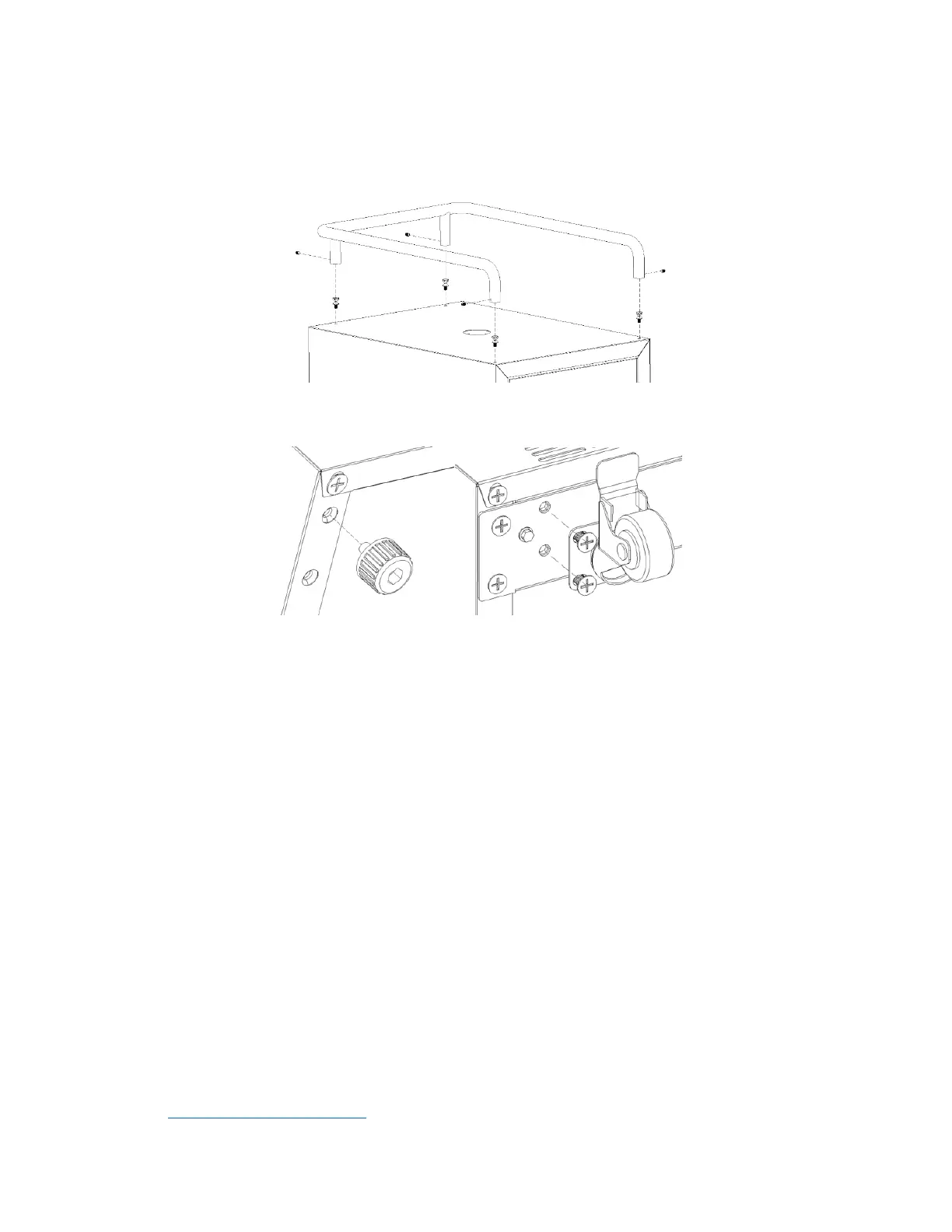 2. Remove the four feet at the bottom of the unit as shown, install caster into the holes and tighten