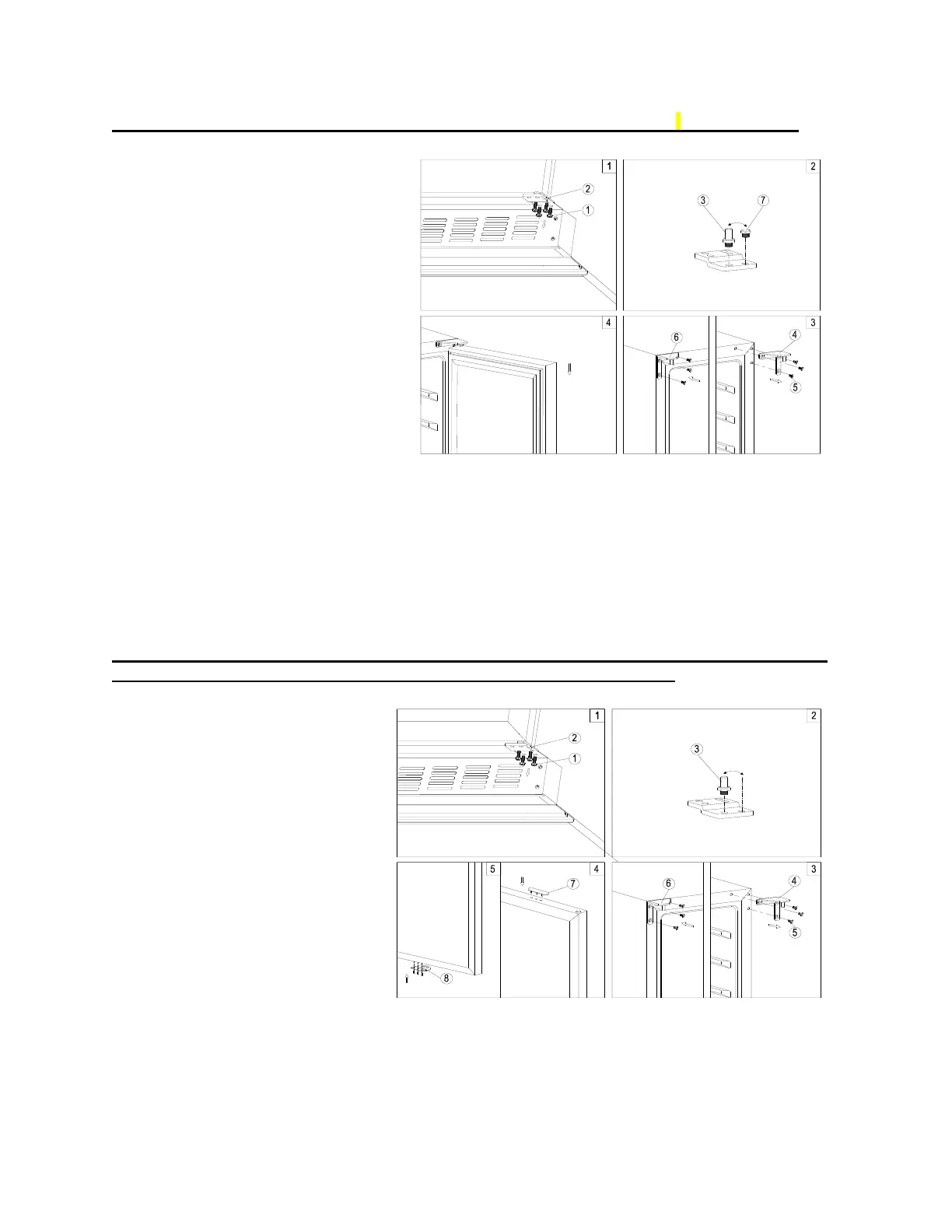 6. Relocate the door to the designated position. Then screw the bottom hinge assembly on the