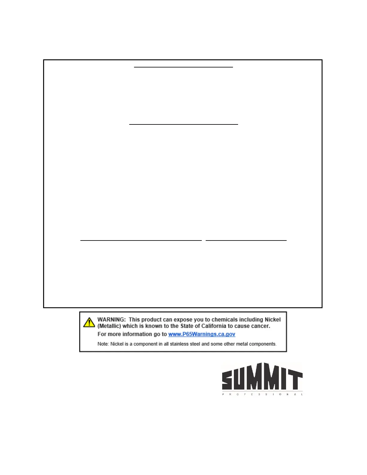 parts are warranted for one year from manufacturing defects. Plastic parts, shelves, and cabinets are