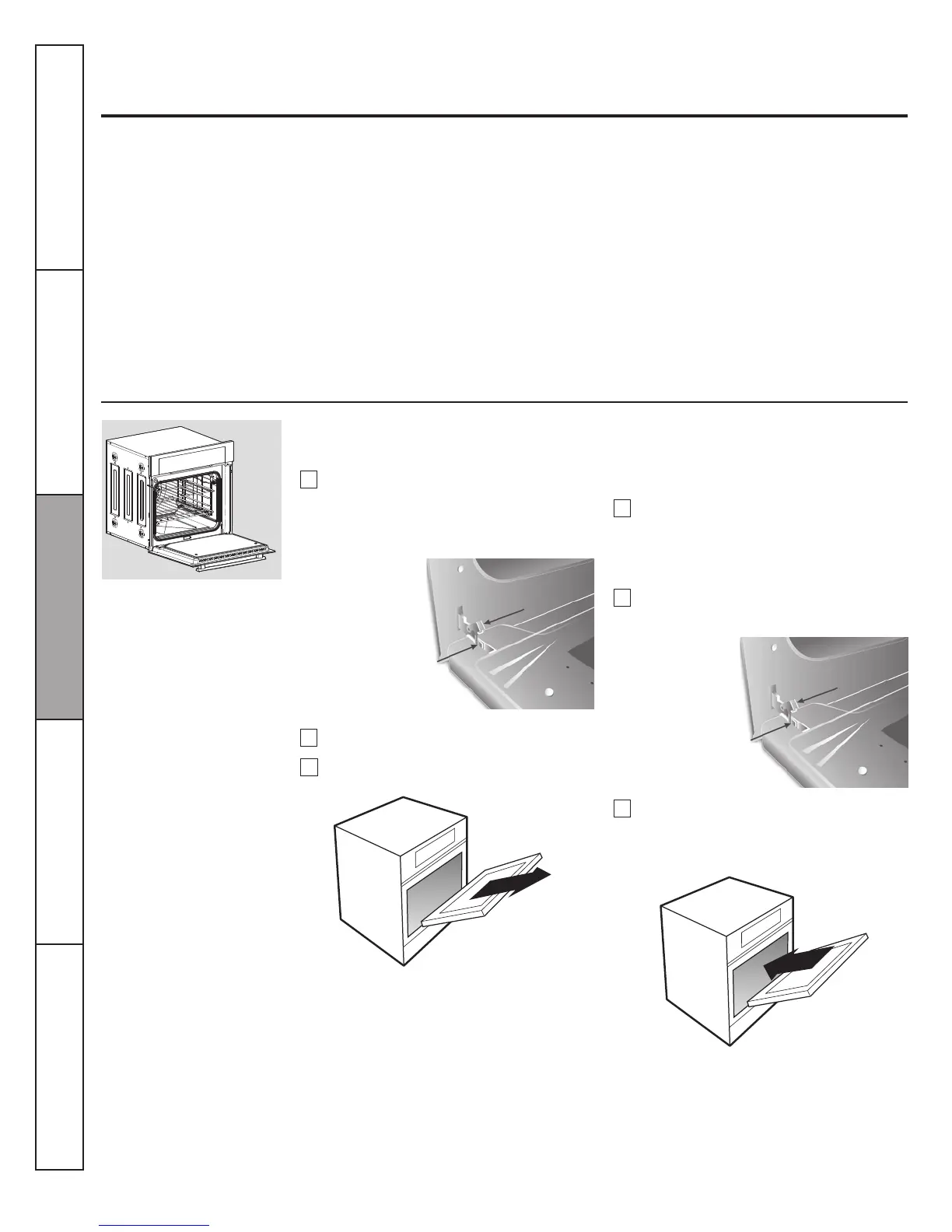 The oven door is removable for easy access to oven cavity. Follow the instructions: