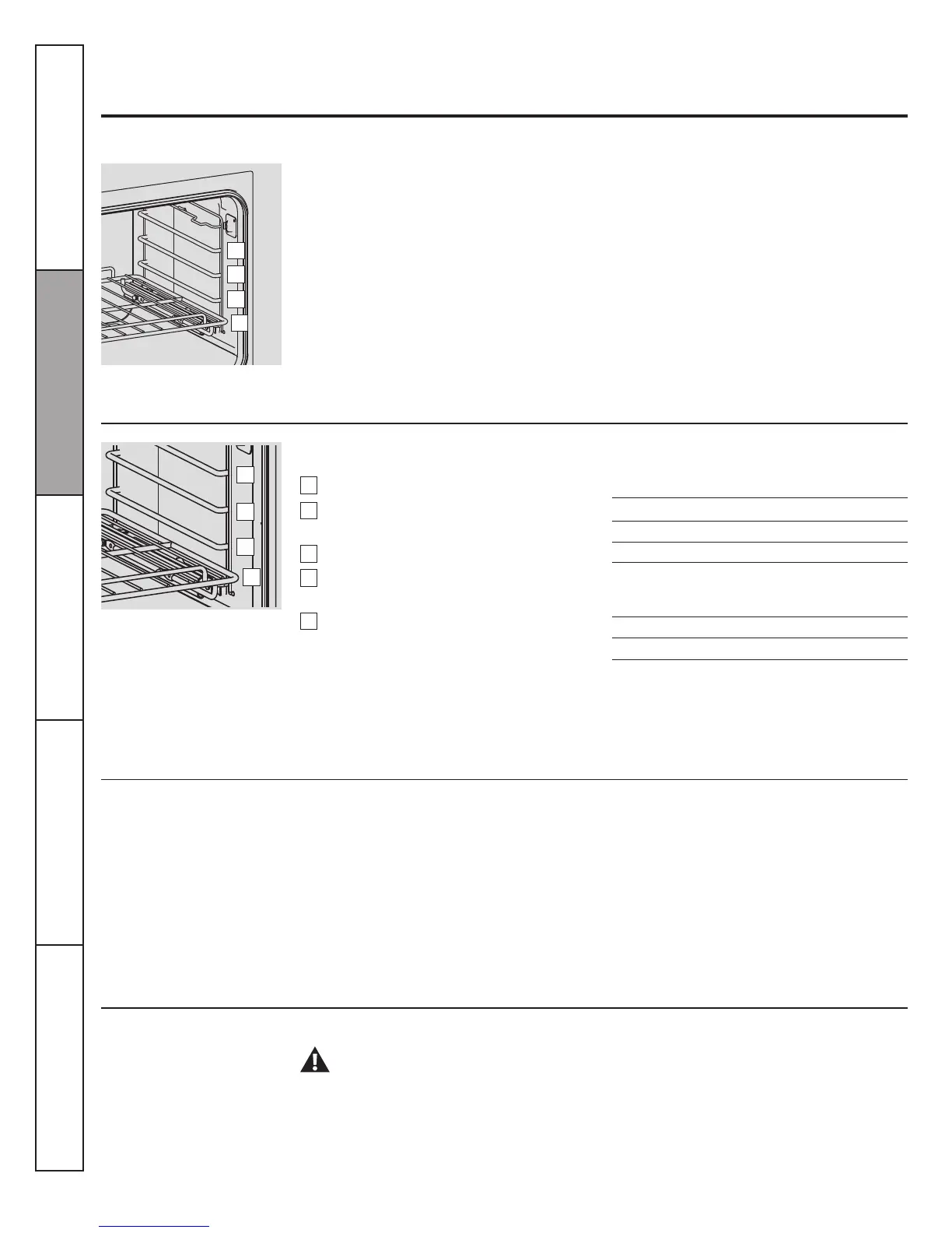 To avoid possible burns, place the racks in the desired position before you turn the oven on.
