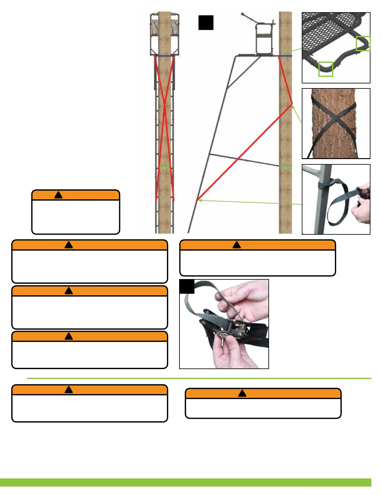 1. Climb up and before stepping onto the platform IMMEDIATELY attach your safety strap around the tree above your seating
