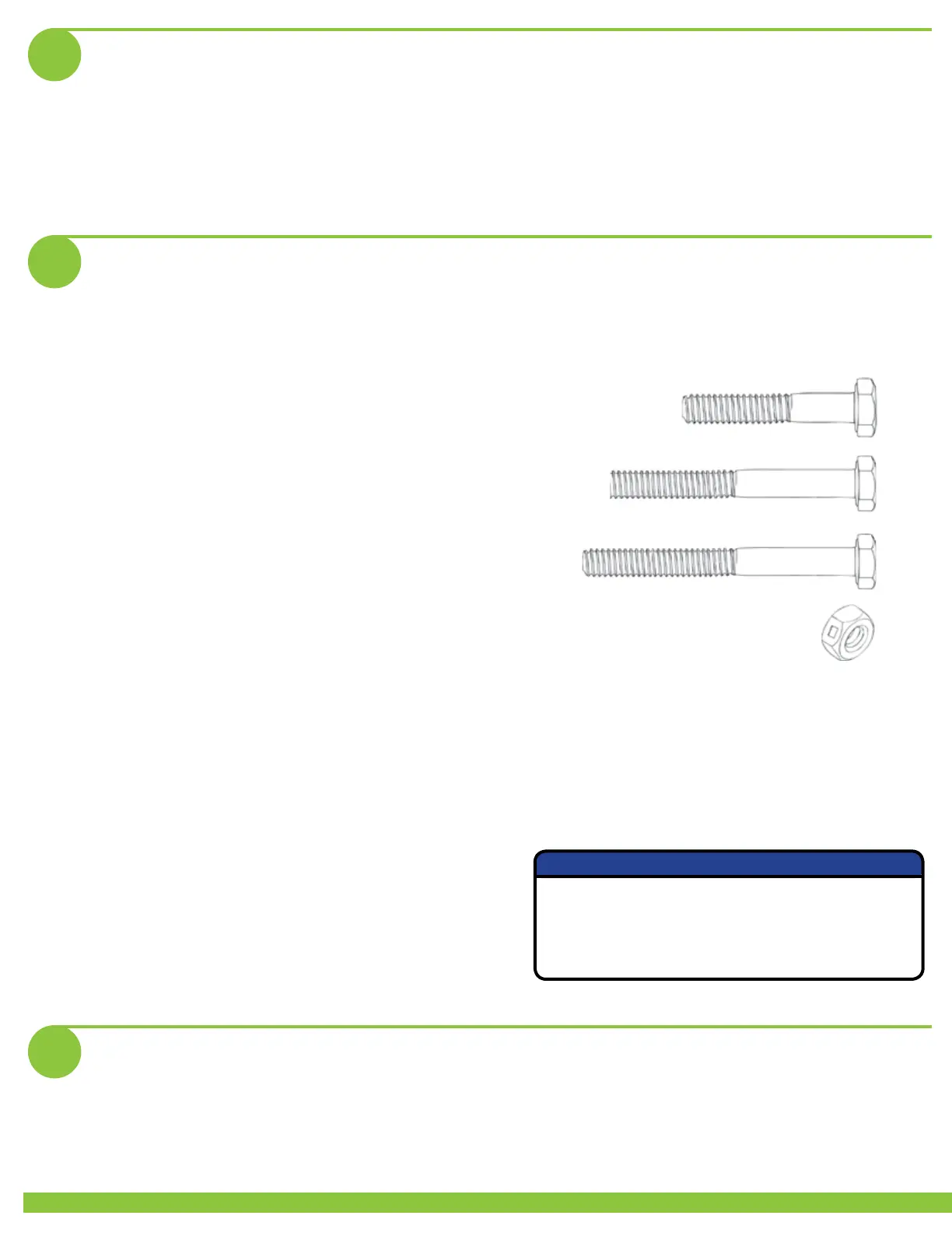 - It is recommended that all bolts be sorted by thread count / length prior to assembly.