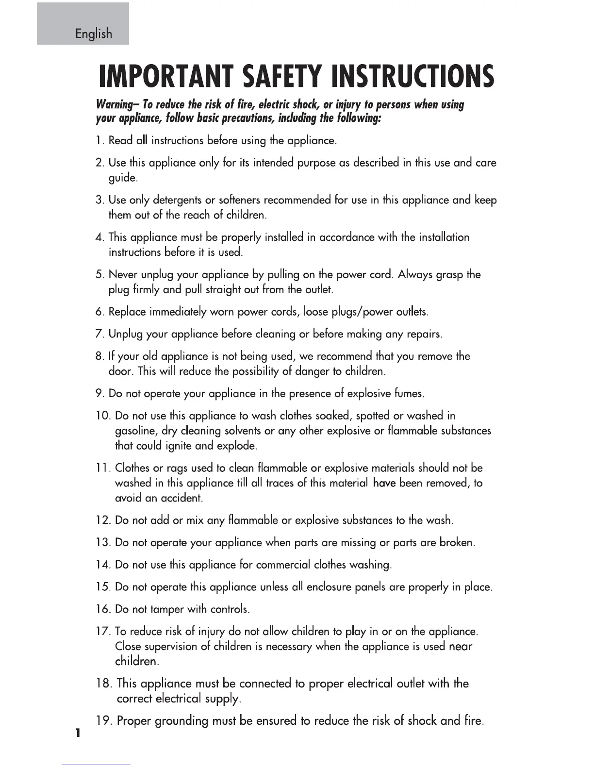 Summit SPWD1800 - Important Safety Instructions