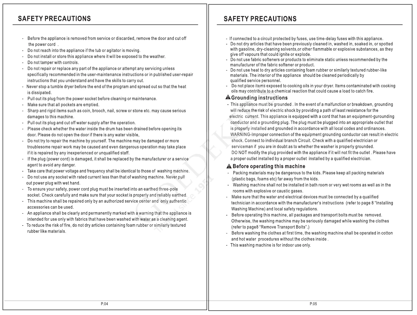 Summit SPWD2200 - Safety Precautions; Important Safety Instructions