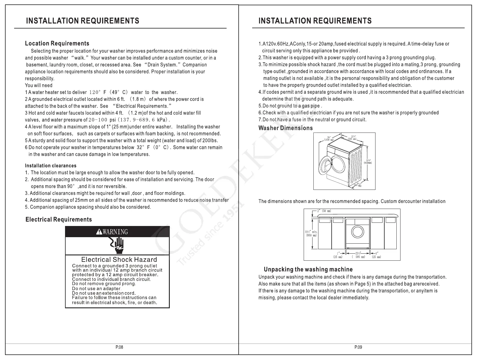 Summit SPWD2200 - Location Requirements; Electrical Requirements