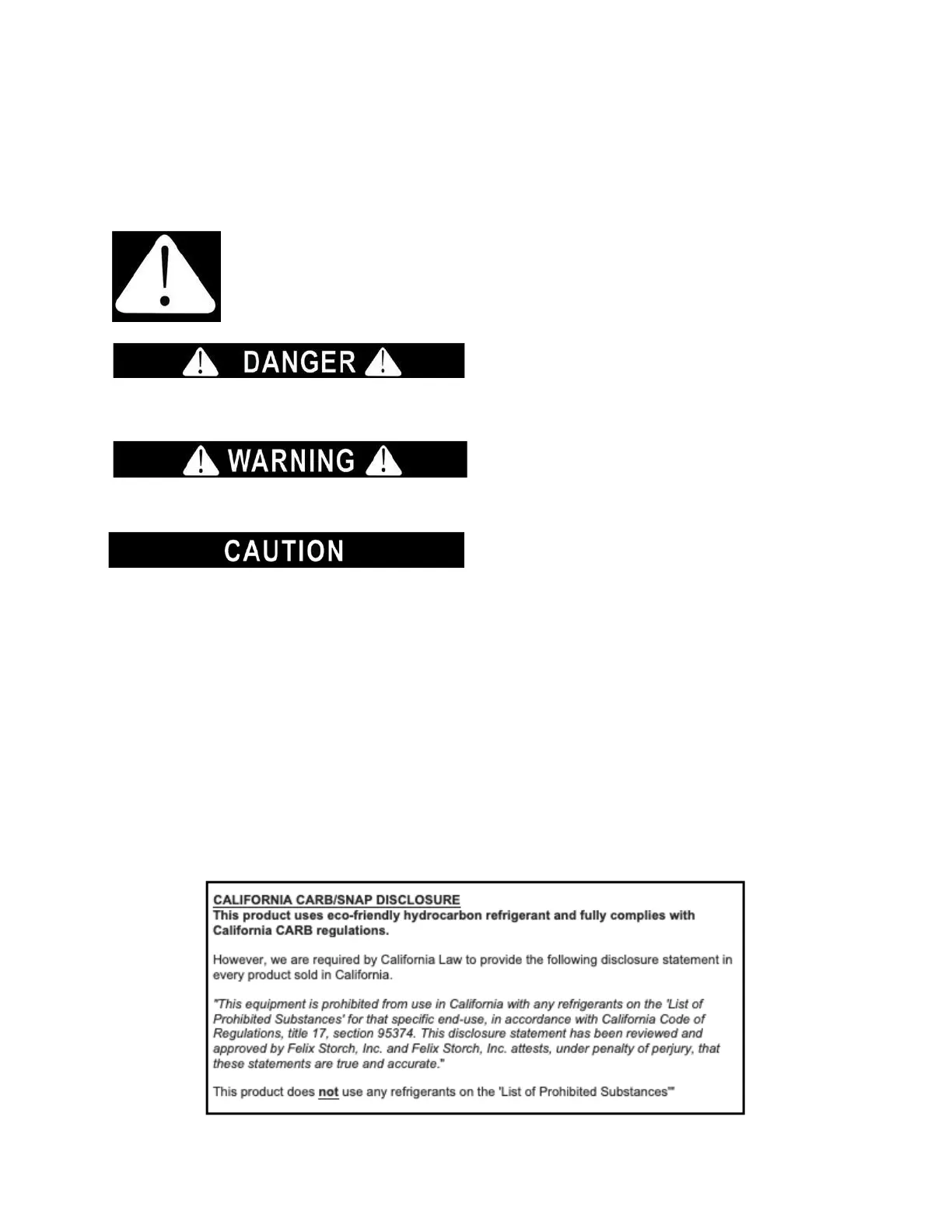 Symbol and either the words “DANGER”, “WARNING” or “CAUTION”.