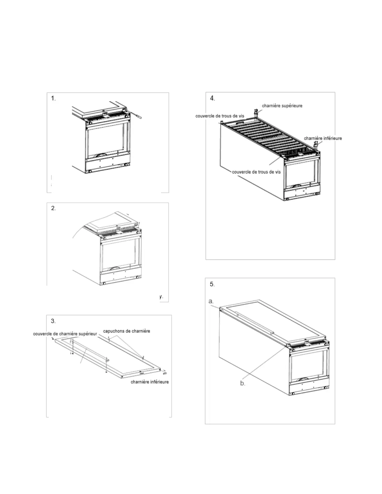 charnière inférieure droite, le couvercle de