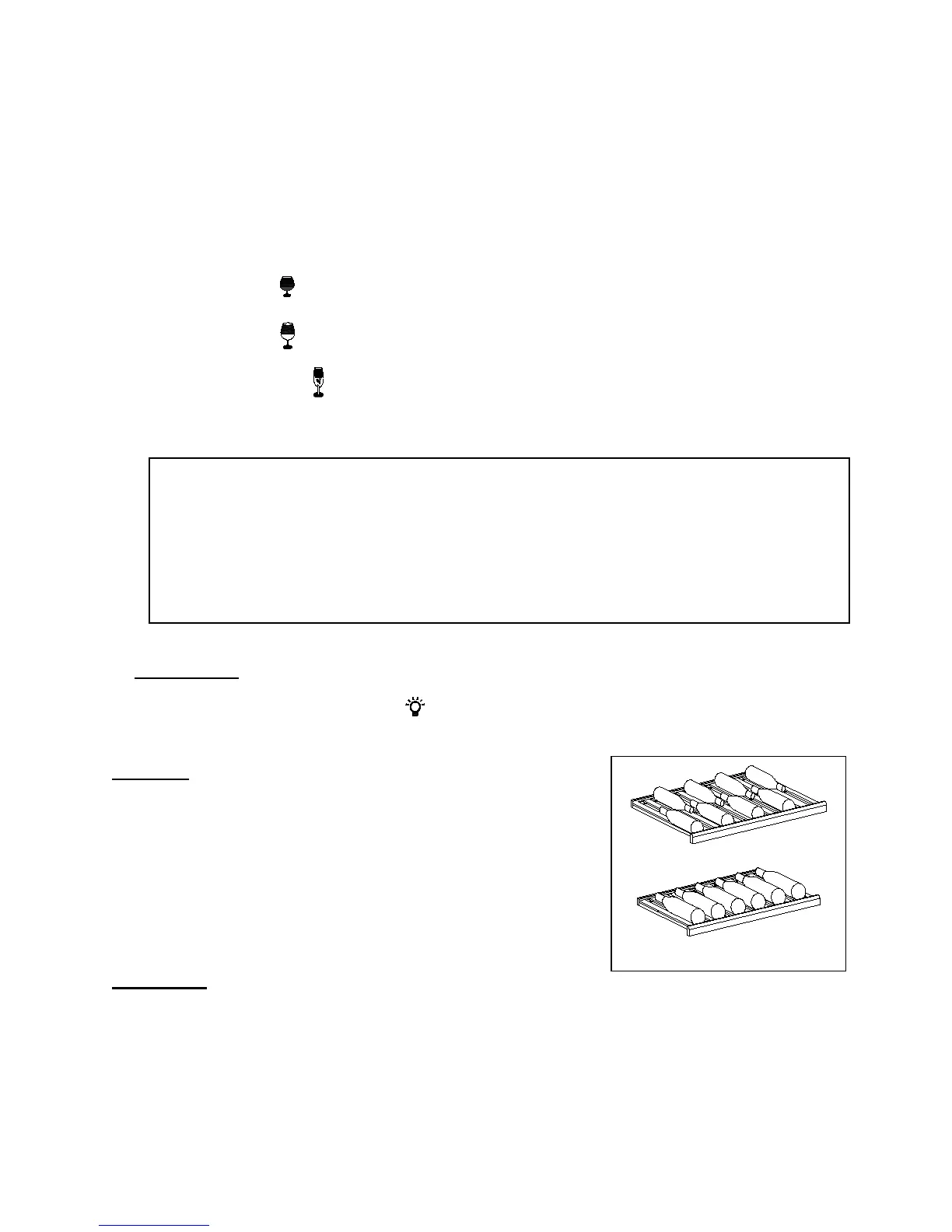 • When you store mostly sparkling wines, the temperature should be set at 40º - 47ºF (5º - 8ºC)