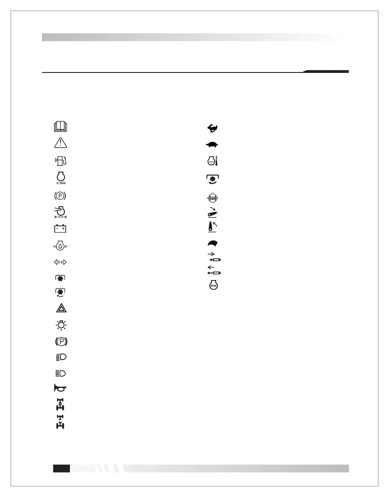 controls and other places on tractor. The symbols are shown below with an indication of their meaning.