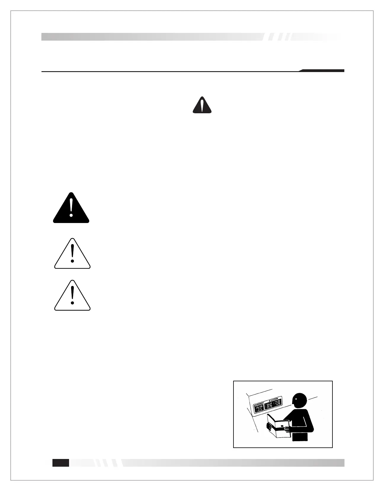 Replace missing or damaged safety signs. Use this operator