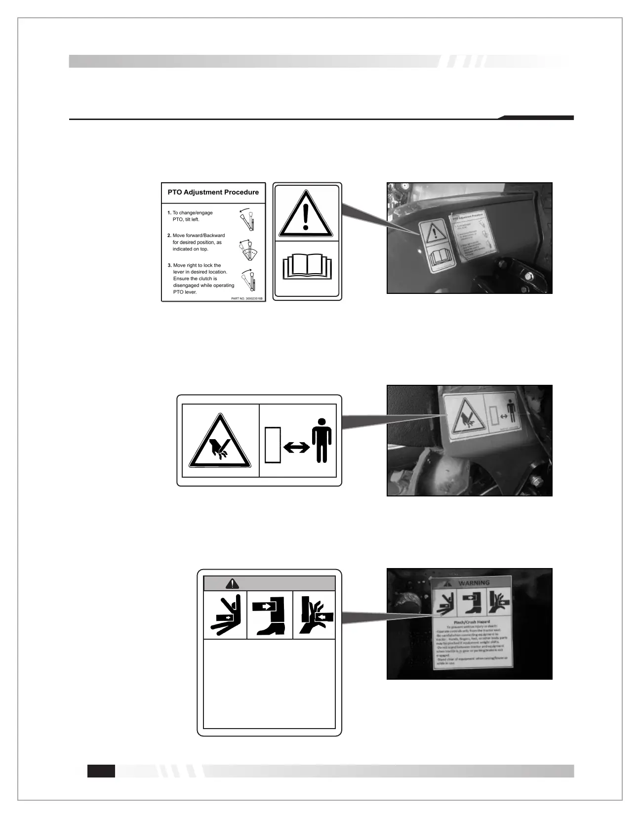 Safety labels for reading operator’s manual for PTO