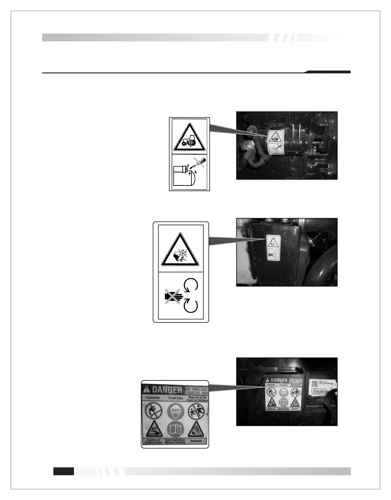 - Do not start engine by shorting across starter terminals or bypassing safety start switch