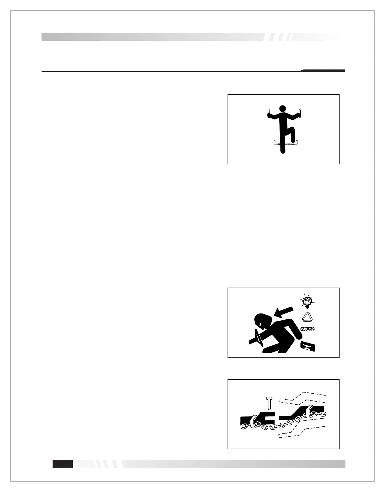 jump while de-boarding the tractor. Never mount or