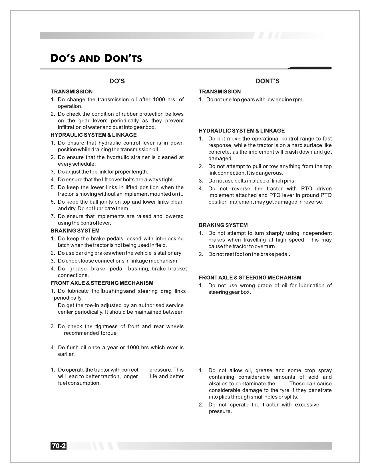 Summit TX25H - Operational Dos and Donts