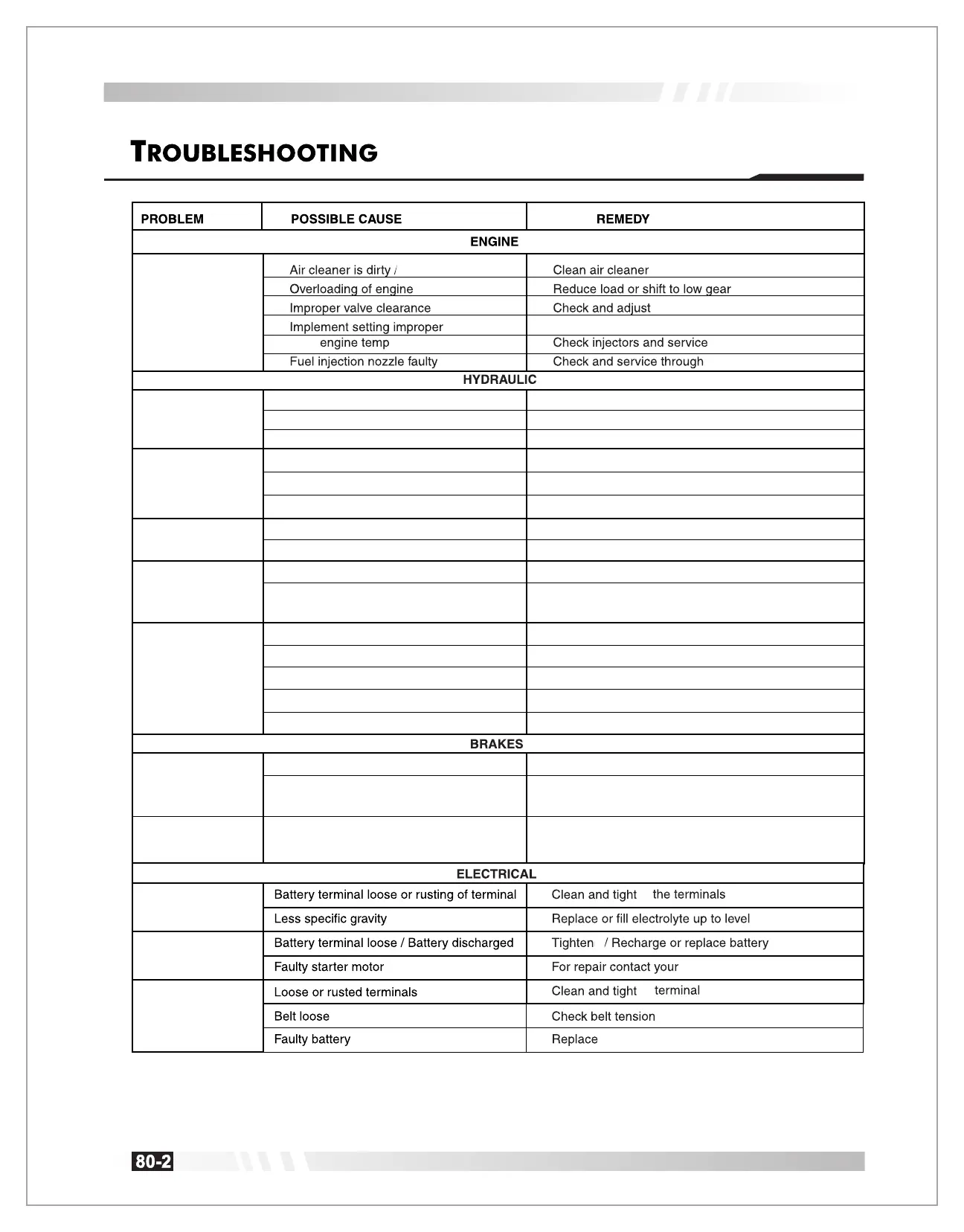 Hydraulic system faulty