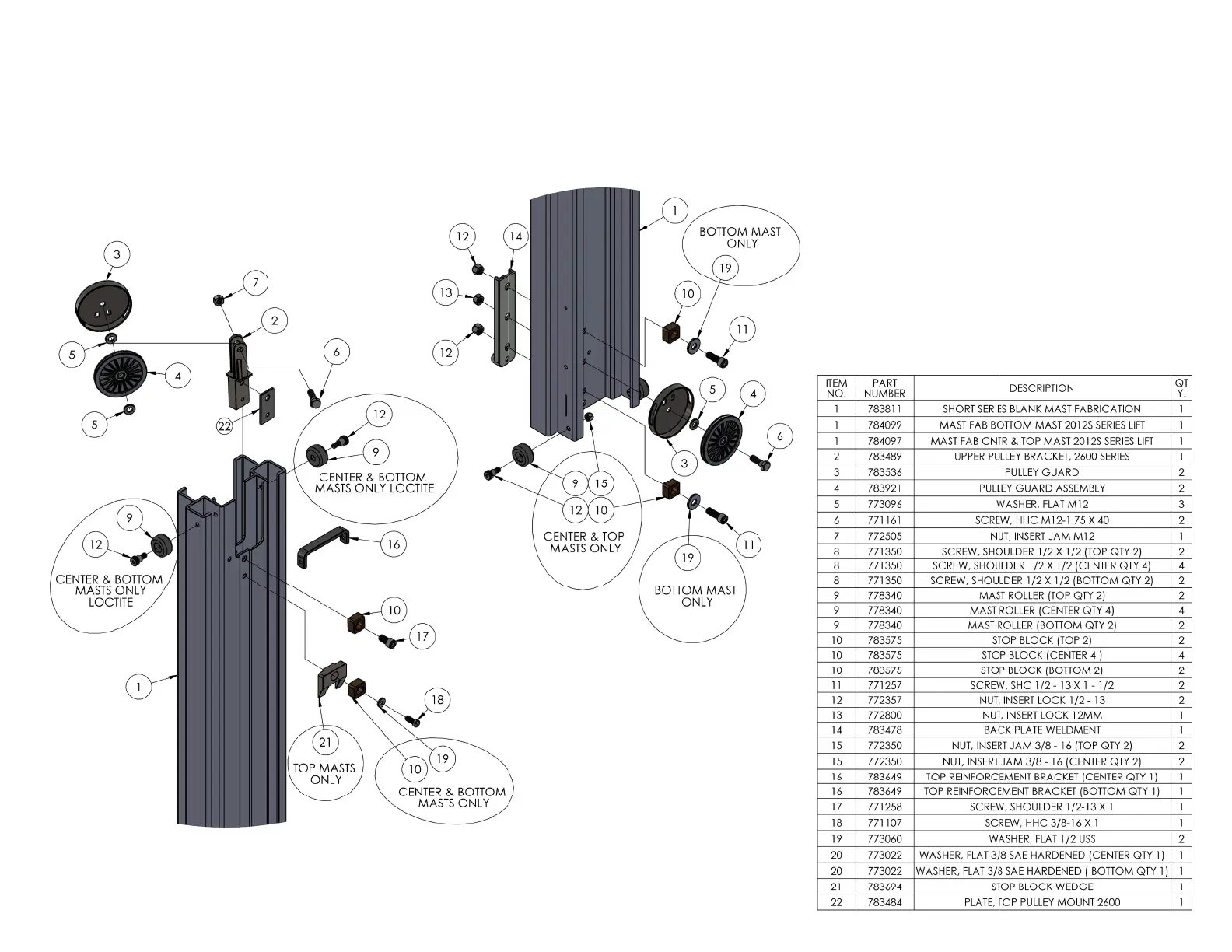 Sumner 2000 Series - UPPER AND LOWER MAST ASSEMBLY
