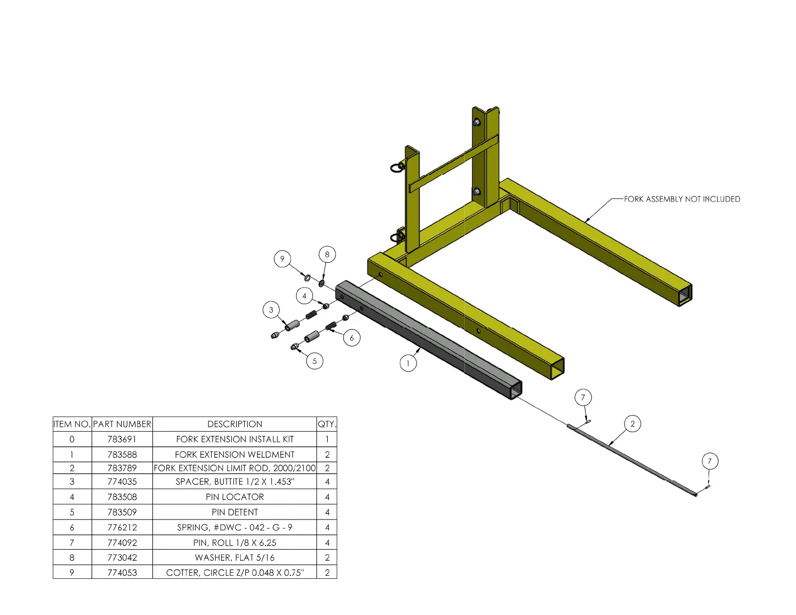 Sumner 2000 Series - FORK EXTENSION KIT ASSEMBLY