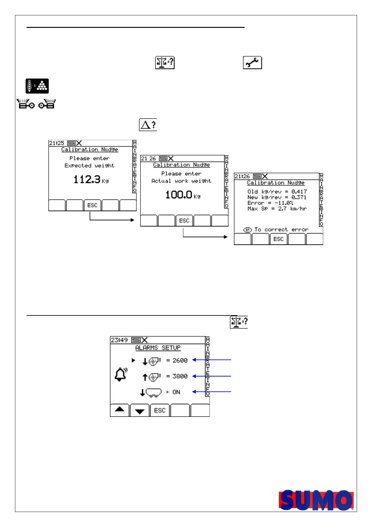 2. From either screen, press the key to select the ‘Calibration Nudge’ screen (fig.16).