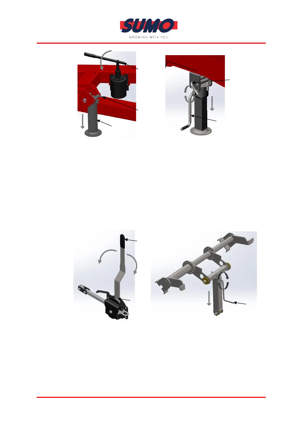 machine is fully supported by the Tractors handbrake. Fully apply handbrake by