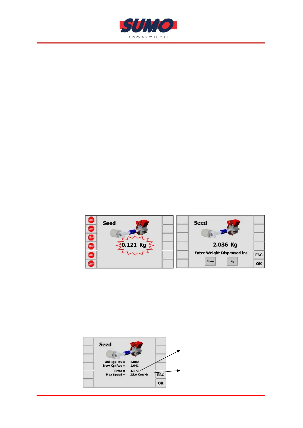 Note: The heading will either be SEED / FERT / LEFT / RIGHT according to the